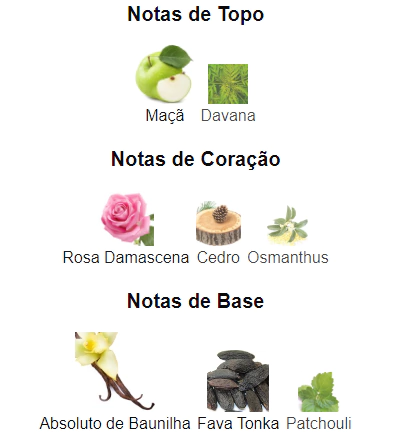 O primeiro ato dessa jornada olfativa começa com um toque fresco, frutado e brilhante da maçã, que simboliza a vitalidade e a juventude. Em harmonia com a maçã, encontramos a davana, uma planta exótica que adiciona uma nuance picante e misteriosa. Juntas, essas notas de topo criam uma abertura cativante, como a primeira página de um livro que nos convida a explorar mais e mais.
